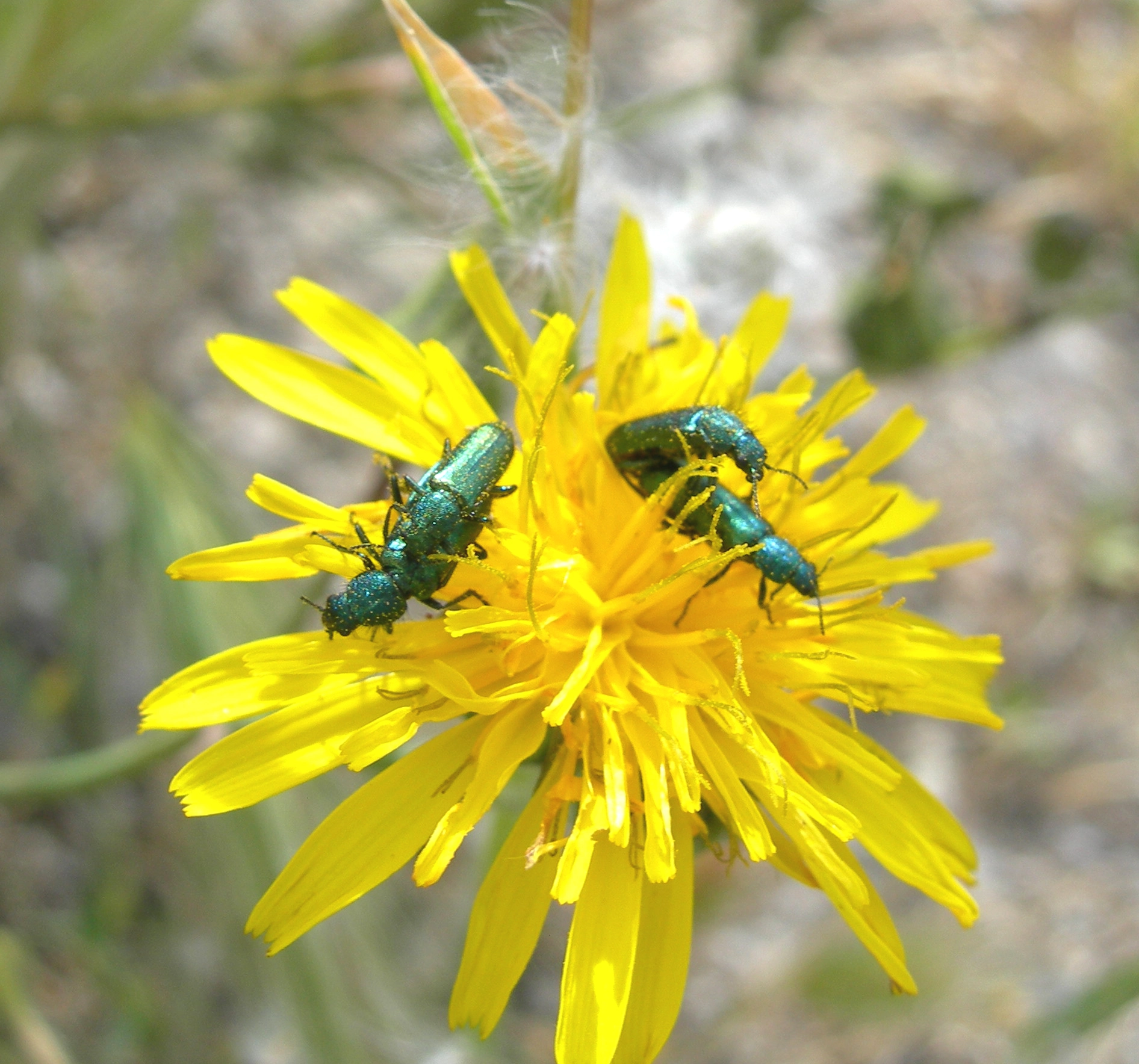 Por una parte, destacar que mientras hay especies que se acomodan a la intimidad y la discreción (muchos carábidos, entre los cuales hemos elegido el ejemplo de “Licinus punctatulus”), otras lo hacen a pleno sol, sin tapujos, sobre las flores de muchas plantas (Psilothrix viridicoeruleus); por otra parte, algunas especies se amparan en la noche y emplean luces románticas para la ocasión (las luciérnagas, siendo “Nyctophila reichii” nuestra representante más genuina), mientras que otras tienen que aprovechar muy bien el tiempo, ya que su corta existencia se reduce a uno, dos o como mucho tres días de vida, por lo que la luna de miel es tan corta como la palabra que define su nombre común: efímera, siendo “Cloeon dipterum” la especie más frecuente en Rivas-Vaciamadrid (aprovechamos para indicar que todos estos ejemplos que estamos mostrando son de especies habituales en nuestra fauna local).