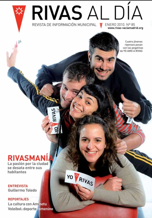 “El ‘banderín’ rojo estrellado ya forma parte de un modo distinto de hacer ciudad”, decía la revista municipal Rivas al Día. Este modo de hacer ciudad tomó cuerpo también con lo que se llamó ‘Rivasmanía’. A finales de 2009, y posteriormente un año después, se invitó a la ciudadanía a participar en la campaña ‘Yo amo Rivas’. A través de fotos con la pegatina que sustituye el clásico corazón por el triángulo ripense, se mostraba la identificación de la ciudad con su gente. Esa pegatina aún puede verse en algunos coches de la ciudad.