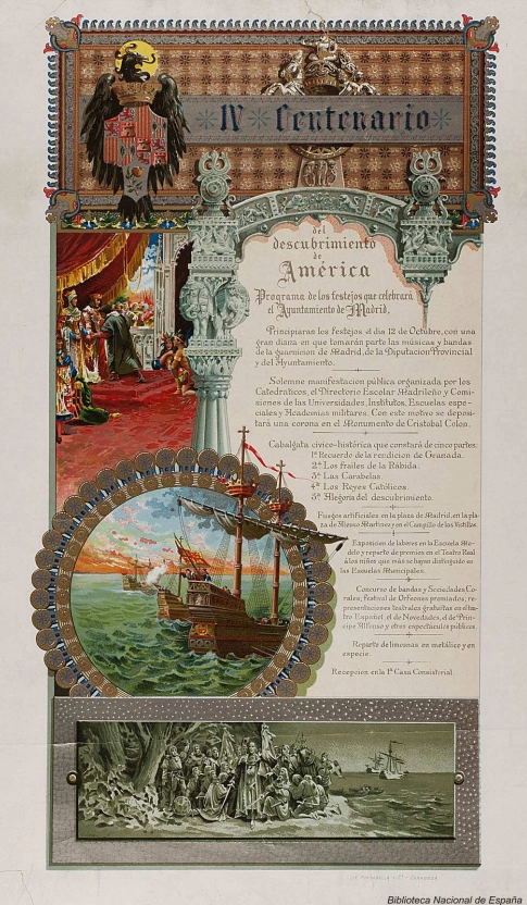 ![IV centenario del descubrimiento de América [Material gráfico] : programa de los festejos que celebrará / el Ayuntamiento de Madrid. Fuente; Biblioteca Nacional de España IV centenario del descubrimiento de América [Material gráfico] : programa de los festejos que celebrará / el Ayuntamiento de Madrid](https://zarabanda.info/wp-content/uploads/2025/10/programa-festejos-12-de-octubre-1892-detalle.webp)