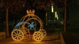 El primero, la plaza de la Constitución, cerca del Ayuntamiento, donde hay un potente conjunto de luces, entre las que destaca una enorme carroza al más puro estilo Cenicienta. El segundo enclave está en el barrio de la Luna. El osito más adorable de Rivas duerme muy cerca de la calle Manuela Malasaña, junto a un precioso árbol y una gran bola. Y por último, en la plaza de la Libertad un gran marco iluminado espera a aquellos que quieran inmortalizarse para recordar este 2022.