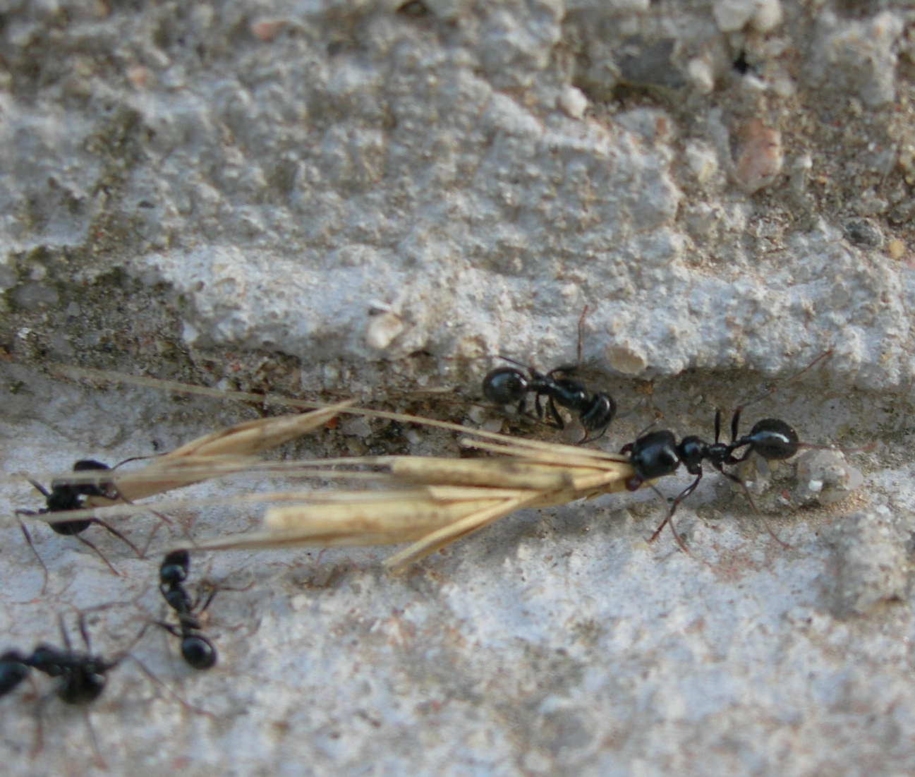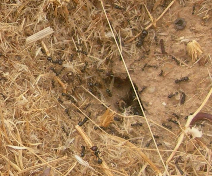 En nuestras latitudes no conocemos hormigas con actividades tan especializadas, pero sí bastantes especies que recolectan semillas de las plantas y las almacenan en sus hormigueros. No es lo mismo, de acuerdo, pero sí al menos cumplen con una de las premisas de la agricultura: la recolección. De esa manera, el mejor ejemplo son las denominadas “hormigas cosechadoras”, que, en nuestros campos, están perfectamente representadas por al menos cuatro especies del género “Messor”; a saber, Messor structor, M. barbarus, M. capitatus y M. bouvieri pueden encontrarse en Rivas-Vaciamadrid, Arganda del Rey y municipios circundantes, siendo las tres primeras muy abundantes. Las hormigas recolectan semillas de las plantas de los campos donde viven y las almacenan en sus hormigueros para ir utilizándolas durante el invierno.