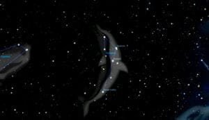 El Delfín (o Delphinus en su nombre latino) resulta muy reconocible en el cielo porque su forma recuerda a la de un delfín saltando en el mar. Dado que es pequeña y requiere una buena vista o prismáticos, os voy a dar las coordenadas por si queréis enfocar un pequeño telescopio de aficionado.