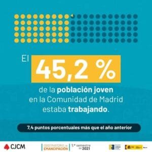 La pérdida de autonomía residencial de la población joven de la Comunidad de Madrid en la primera mitad de 2021 coincidió con una fuerte recuperación de la actividad y el empleo. La Comunidad registró uno de los mayores incrementos interanuales entre la población joven. Pero esta recuperación no vino acompañada de una mejora en las condiciones de emancipación. Son tres los factores que hacen que sea un crecimiento desigual: el empleo aumentó gracias a la ocupación en puestos a tiempo parcial (el 29 % de toda la población joven ocupada) por encima de la media estatal, la temporalidad (el 46,3 % de toda la población joven asalariada de la Comunidad) y el auge del paro de larga duración (31,1 %).