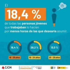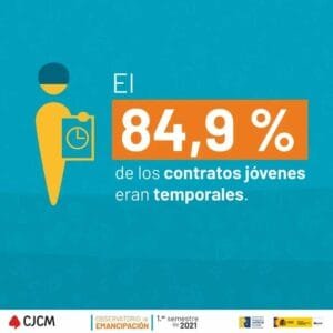 De entre toda la población joven, las mujeres jóvenes en la Comunidad son las más afectadas por la parcialidad y la temporalidad. La brecha es notable: el 37,7 % de puestos a tiempo parcial frente al 18,9 % de los hombres jóvenes, y un 52,0 % de mujeres afectadas por la temporalidad mientras que en los hombres el porcentaje es del 39,5 %. En términos absolutos, el aumento anual de la temporalidad en las mujeres fue más de cuatro veces superior al de los hombres (del 98,82 % de las mujeres, frente al 23,08 % de los hombres).