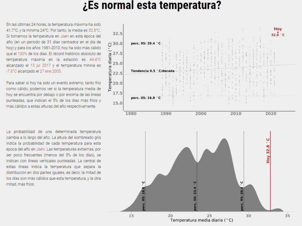 En esta web de la Universitat de les Illes Balears puedes ver si en la capital de la provincia en la que vives está pasando un calor extremo para estas fechas o se trata del verano normal y corriente de todos los años. Puedes ver, por ejemplo, como del 12 al 13 de junio de 2022 Jaén vivió un extremo cálido.