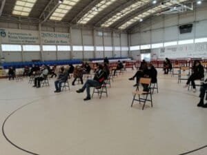 La primera sesión de test de antígenos en Rivas, ha empezado esta mañana, en las instalaciones del polideportivo Cerro del Telégrafo.