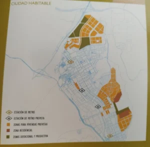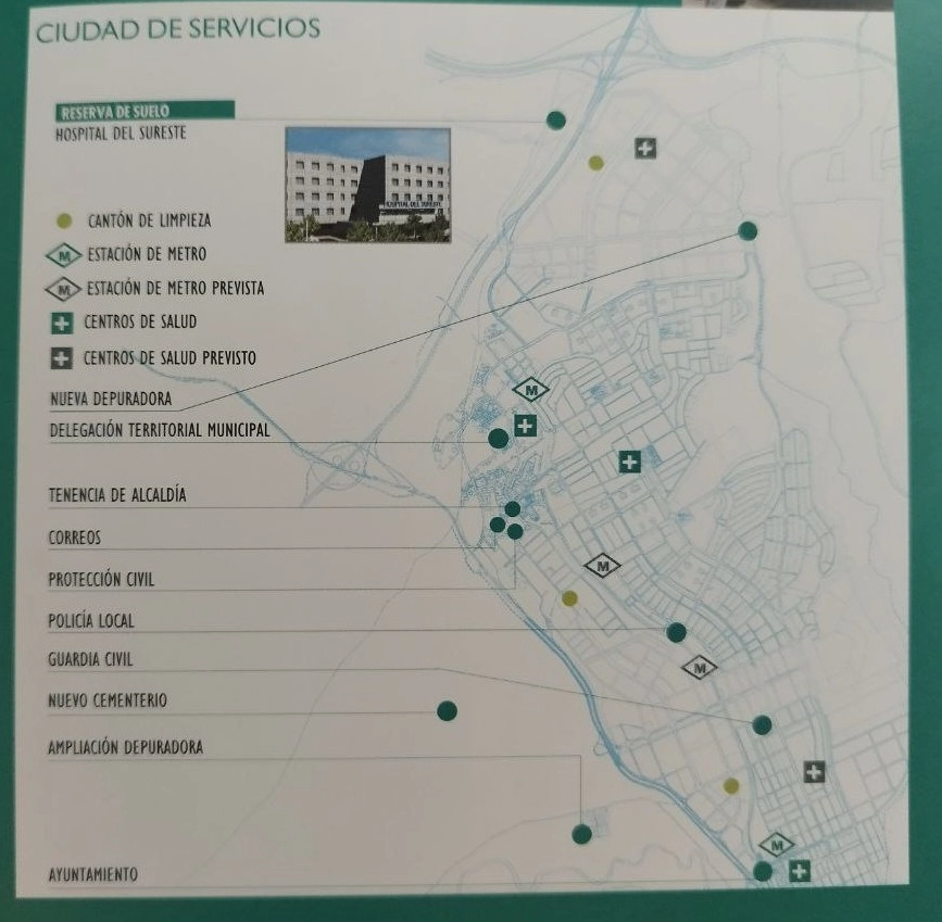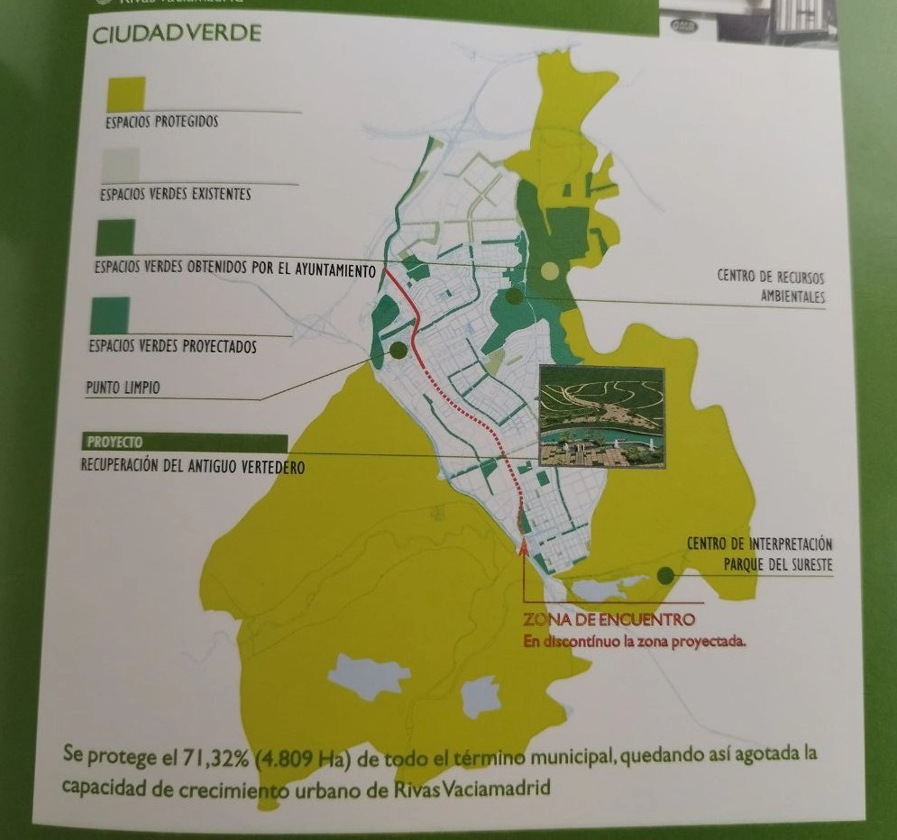 El folleto hablaba de recuperar el antiguo vertedero (hoy recinto ferial y auditorio Miguel Ríos), de continuar el parque lineal soterrando el metro que recorre toda la ciudad y de proteger el 71,32% del término municipal. Una idea de ciudad rodeada de espacios naturales que se mantiene en la nueva planificación.