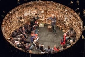 También inicia su estancia en los Teatros del Canal Biblioteca de cuerdas y nudos, una propuesta teatral para niños de 6 a 12 años que es simultáneamente una instalación artística situada en la Sala de Cristal. El artista escénico José Antonio Portillo ha concebido una estructura circular de madera que guarda objetos, fragmentos de vida y polvo en sus estanterías, alrededor de los cuales convocará al público familiar para revelar sus historias.