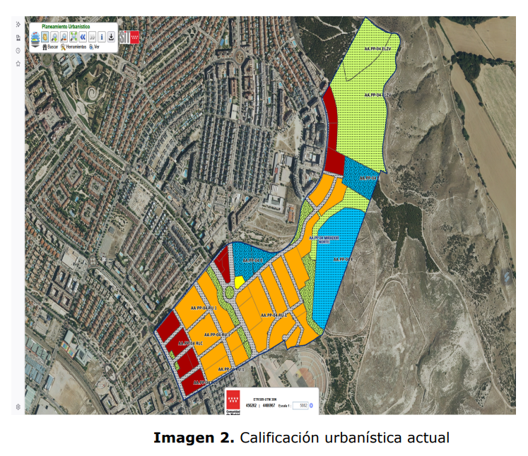 En el comunicado, recuerdan que el planeamiento actual ya contemplaba la ejecución de calles, zonas verdes y equipamientos que siguen pendientes. Por ejemplo, las calles Pilar Bardem y Vicente Aranda «siguen sin conectar», y varias parcelas públicas permanecen sin uso desde hace más de una década sin que hasta la fecha se conozca qué equipamiento está previsto ejecutarse, denuncian.